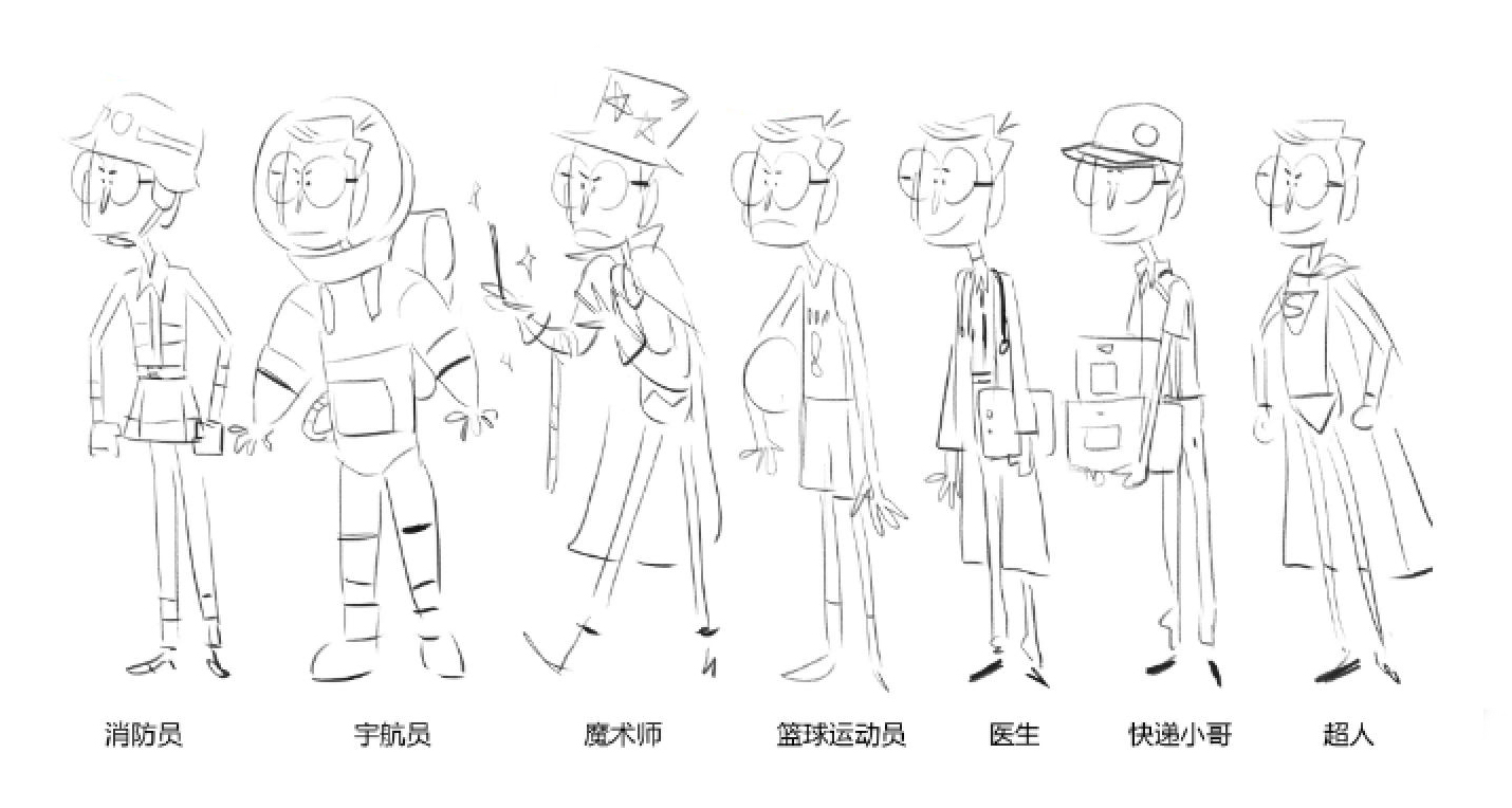 看似简单的人物形象设计,也是经过多个日夜,多番细细打磨形成。例如在小时候的“我”和长大的“我”的形象上,需在五官方面有共通处,然而在神情状态却又有着明显的不同,形似而神不似。