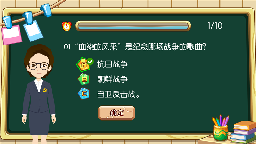 该交互,主要是把一些与红色歌曲的相关选择题,做成互动问答的形式。